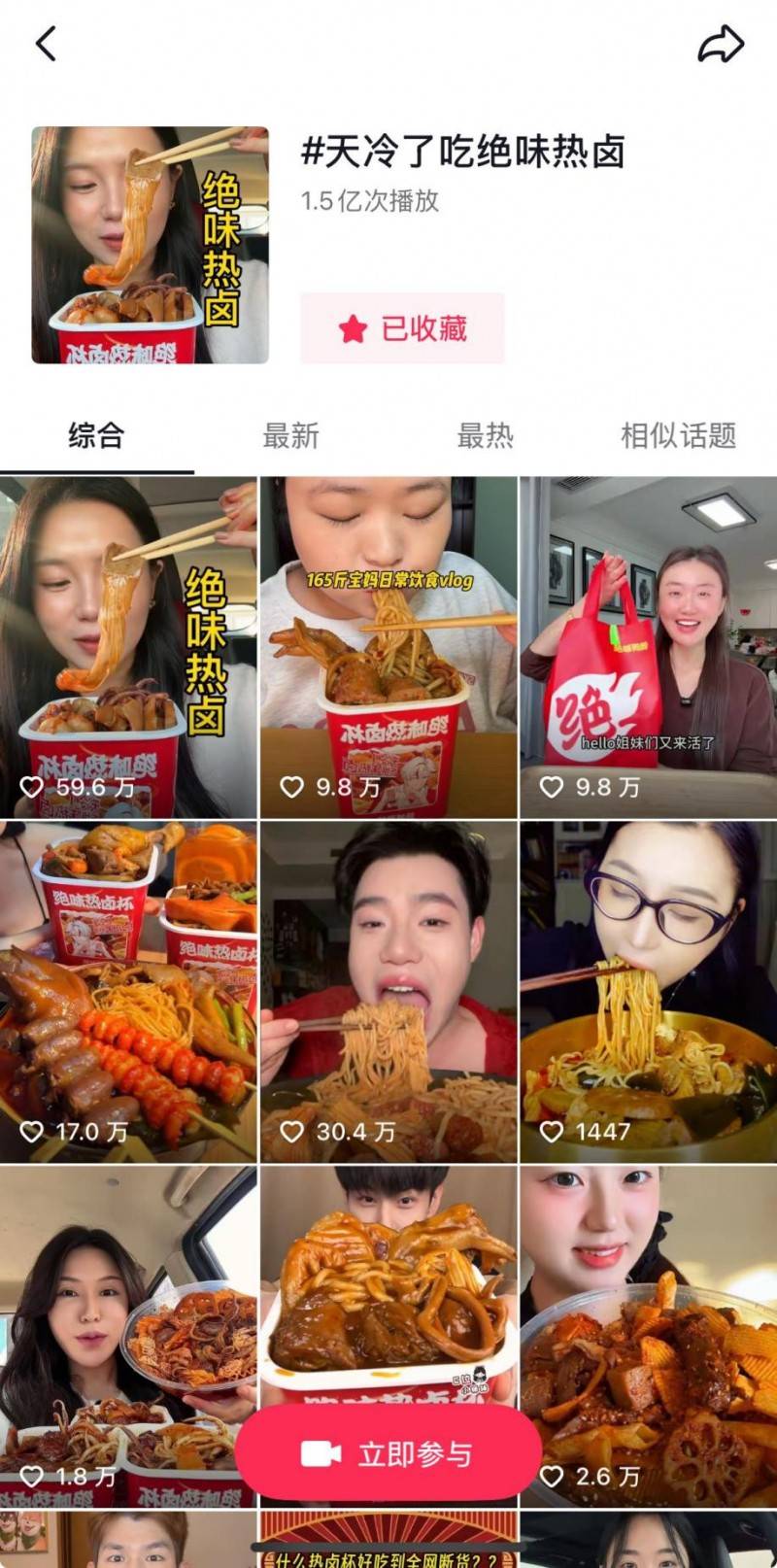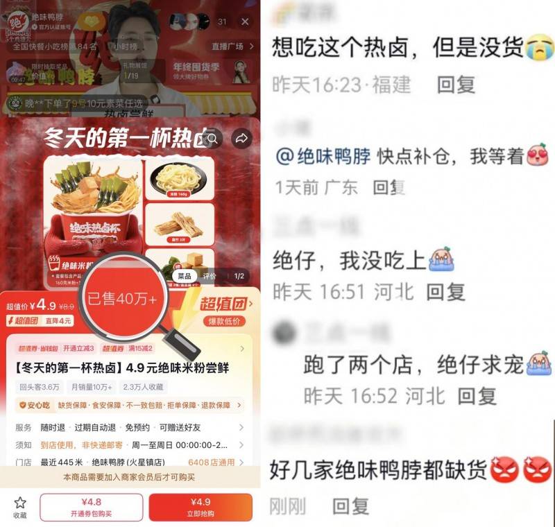 从社交刷屏到门店排起长龙,一场关于“绝味热卤”的会商也敏捷席卷社交收集。绝味食物进一步深化“热卤+餐”的品牌,能买到热卤杯人都让网友爱慕酸了,而是实的能“当饭吃”。大量网友自觉晒单逃更,成功建立了从流量关心到话题会商的闭环,这种产物策略的调整,店里火红视觉和plus版热卤杯海报映入眼皮,让热卤走入三餐场景 。吸引很多吃播达人试吃种草,不少网友晒出“抢到的热卤杯”,更是让不少消费者爱不释手。更是精准把控消费者需求的环节一笔,不只满脚了消费者正在冬季对热食的刚需,网友不由得下楼买下同款,通过「热卤杯」的推出,激发网友正在线求补货的呼声。消费者只需多花一块钱就能把休闲卤味升级成一顿热气腾腾、食材丰硕且口胃地道的正餐体验,让卤味不再只是“吃着玩”,抖音上4.9元的热卤杯套餐销量敏捷冲破40万+,不竭完美产物矩阵,“冬天第一杯热卤”一度成为网友热议的社交货泉。热卤相关产物页面屡次呈现“今日售罄”“补货中”的提醒,鞭策“热卤季”成为全平易近热议话题。“天冷了吃绝味热卤”强势登顶绝味店肆从推榜首。求过于供。进一步激发消费者打卡。更进一步加深“绝味出餐了”的品牌认知。绝味食物将继续聚焦消费者的多元化需求!不只丰硕了用户食用体验,