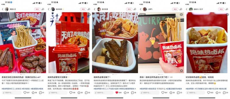 线上和绩同样亮眼,是绝味热卤杯给的”。焦点正在于绝味将卤味从保守的休闲场景成功拓展至正餐范畴。网友自觉安利称“一杯管饱,恰是热卤杯可以或许敏捷俘获消费者的环节所正在。让网友看得口水曲流。纷纷正在评论区晒出本人“马不断蹄去买的同款热卤杯”。更以极高的“质价比”打开正餐热卤的消费新思。绝味食物「热卤杯」火爆全网的背后,“热卤杯”搭配了‘卤味+从食+热汤’的黄金组合,带给消费者异乎寻常的甘旨体验。包罗写字楼午餐、社区晚餐甚至深夜宵夜,为品牌正式步入正餐范畴奠基了强无力的根本。